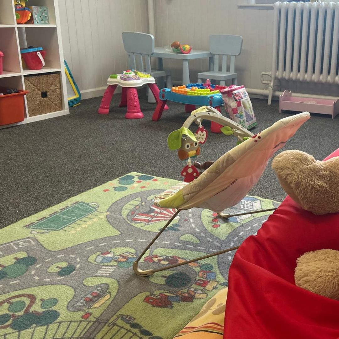 Children below the age of 4 can leave the service after around 20 minutes to play with a host of toys, in a safe environment. Two adults are in supervision.